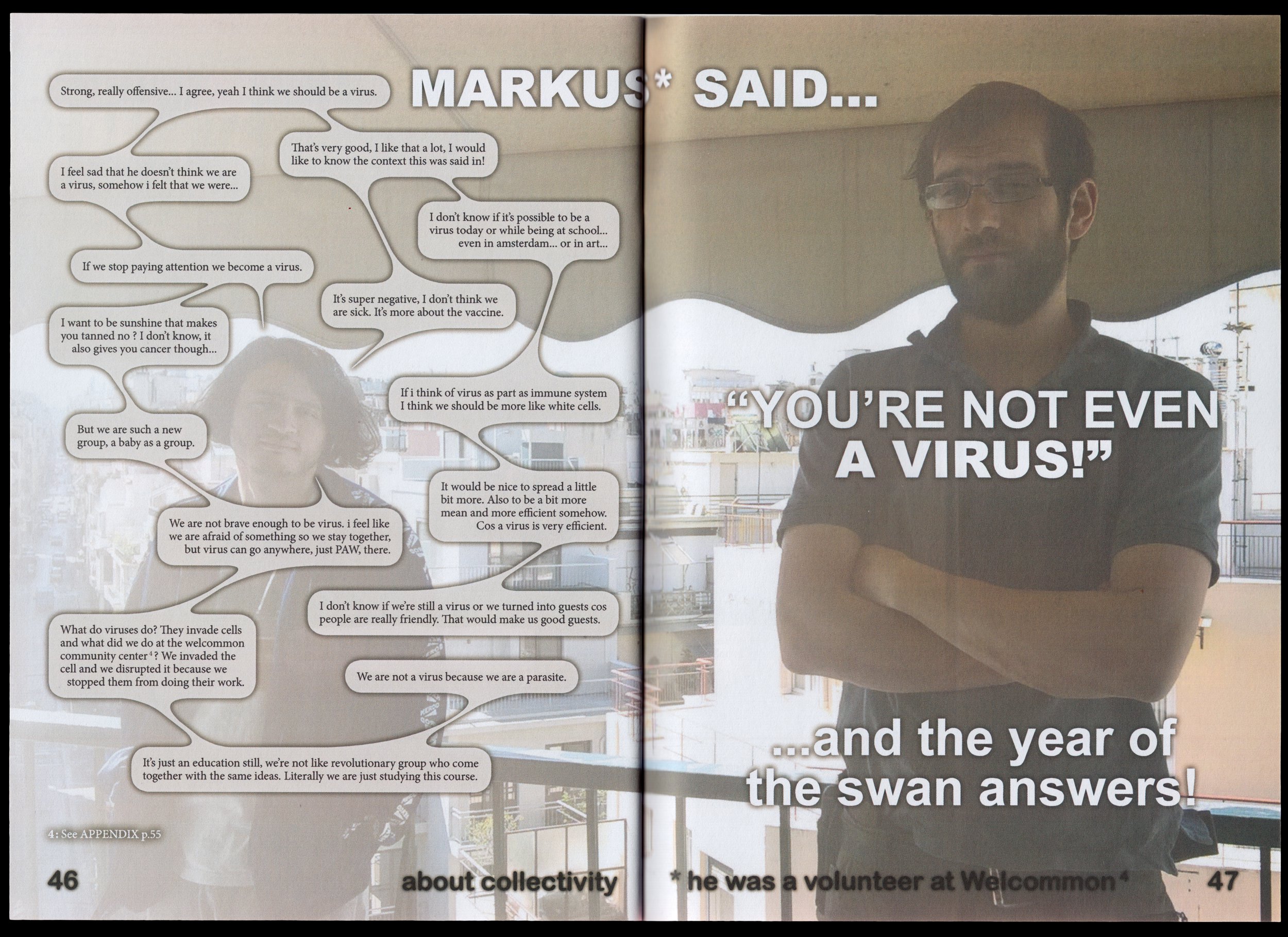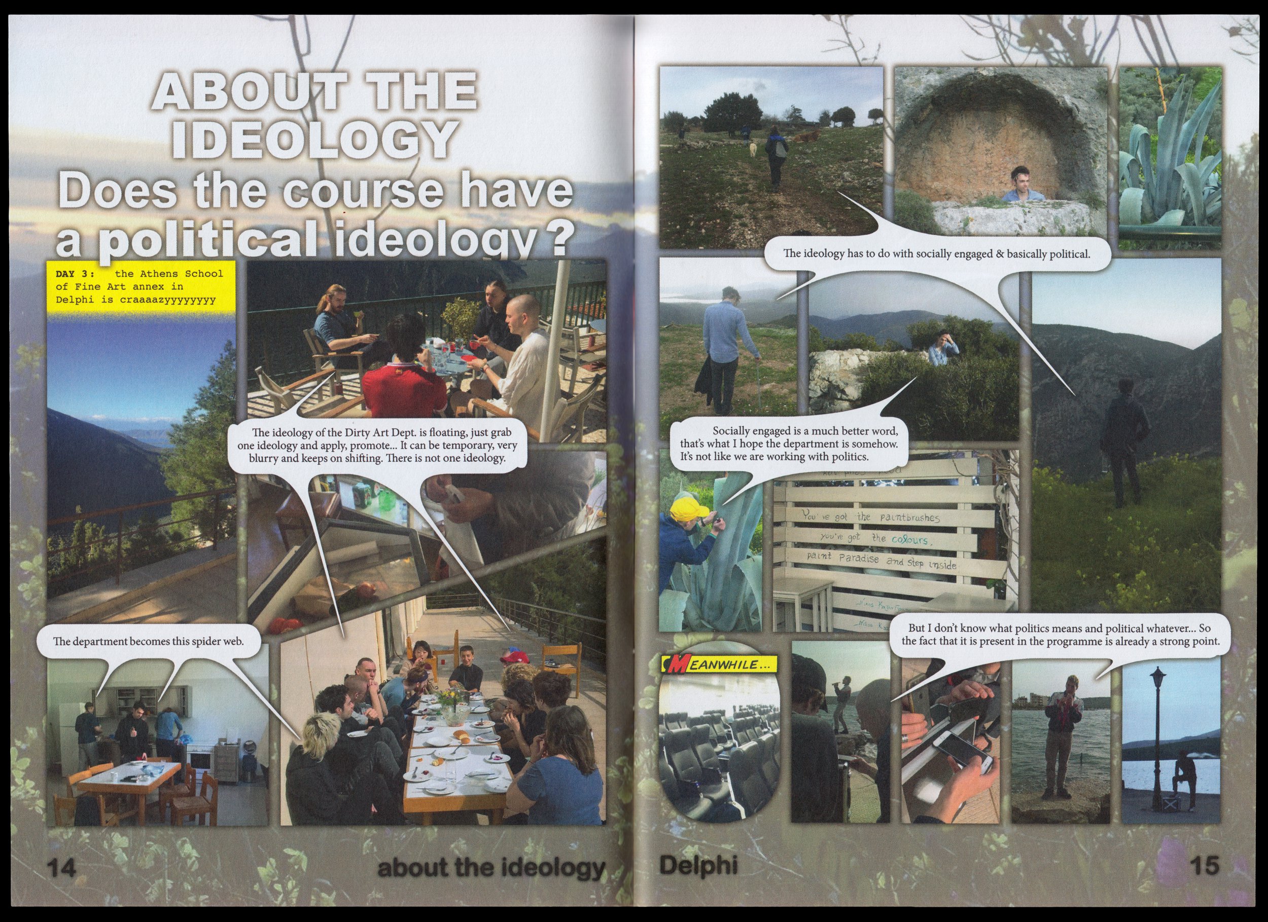 Academiae Biennial" in Bolzano (IT), the department commissioned me to design a booklet to represent them and their students. I proposed to craft a photo novel showing the daily life of the department as well as a series of interviews with the students. All the images in the booklets were provided by the students, while the interviews were done in collaboration with one of the students, Dani Andres.