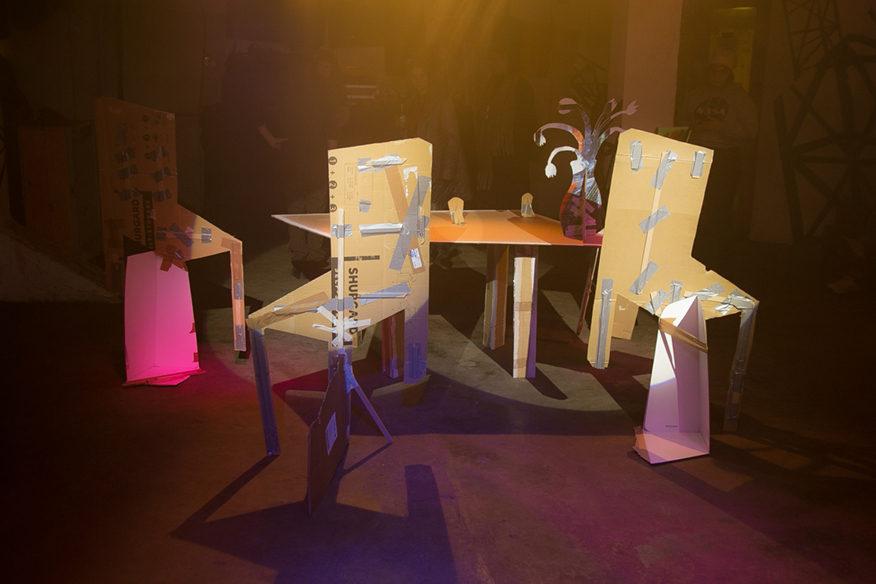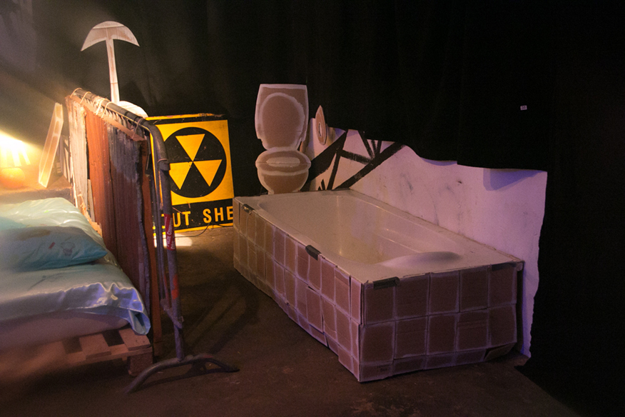 Affiche et scénographie réalisées pour le double événement de Pyjama Protest : « Bunker Viewing », une installation artistique mettant en scène la visite d'un appartement au Vondelbunker, et « Bunker Warming », une fête avec des artistes jouant de la musique à propos de la crise du logement à Amsterdam. Pyjama Protest est un mouvement mené par des étudiants qui protestent contre la crise du logement à Amsterdam.