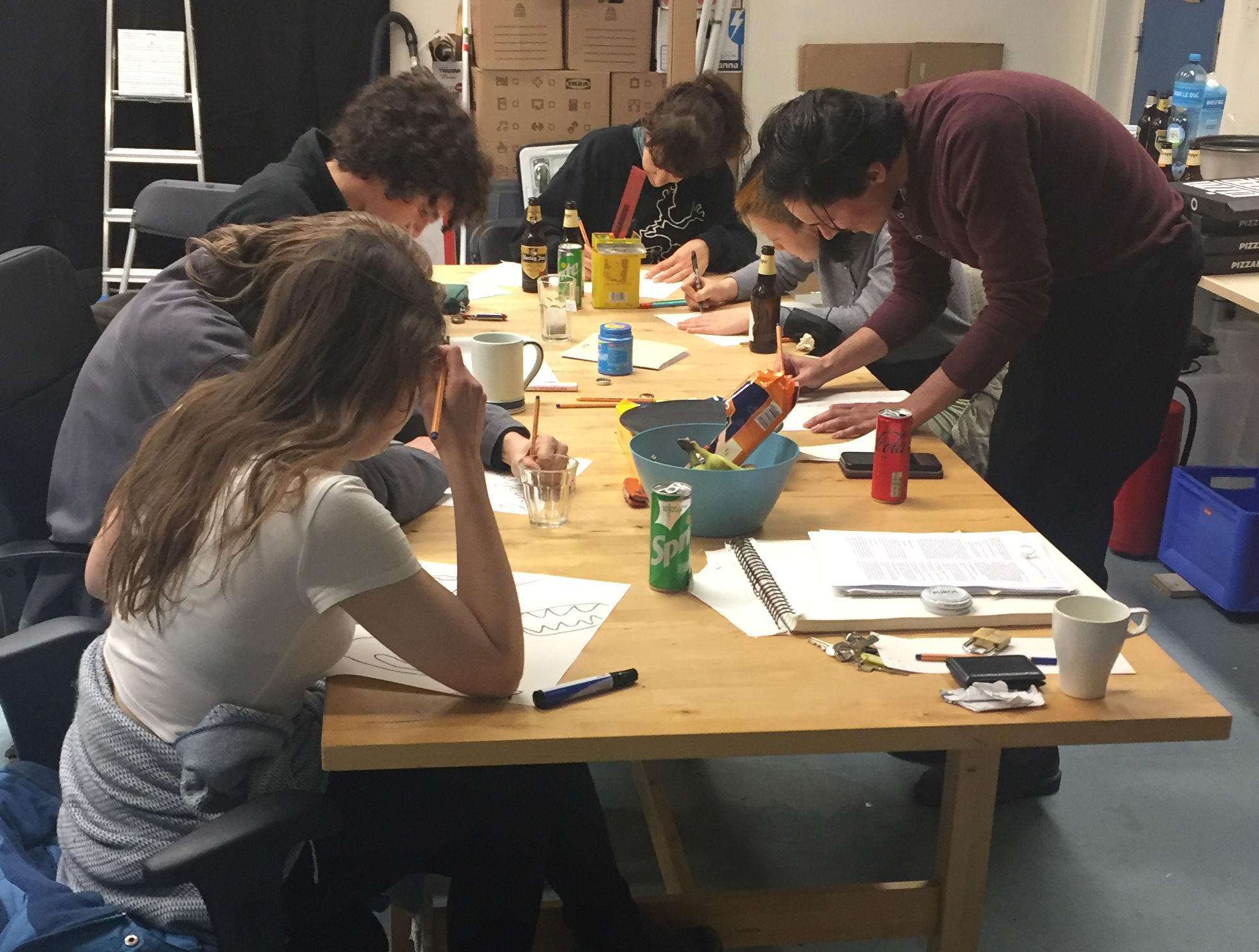 First workshop with Nicola Baratto, Alban Karsten, Leslie Lawrence, Kitty Maria, Léo Ravy, Sophia Simensky and Sun Chang
