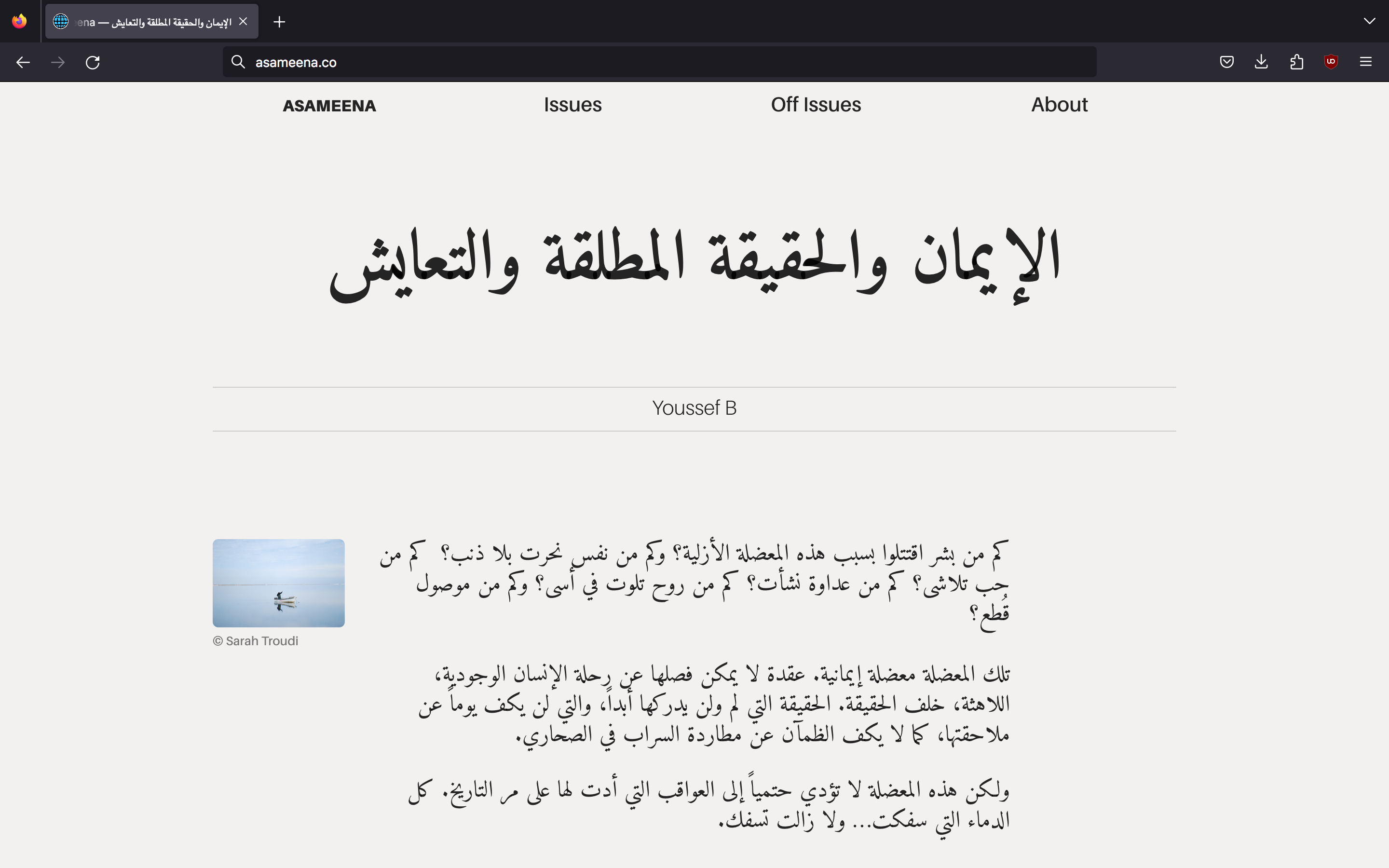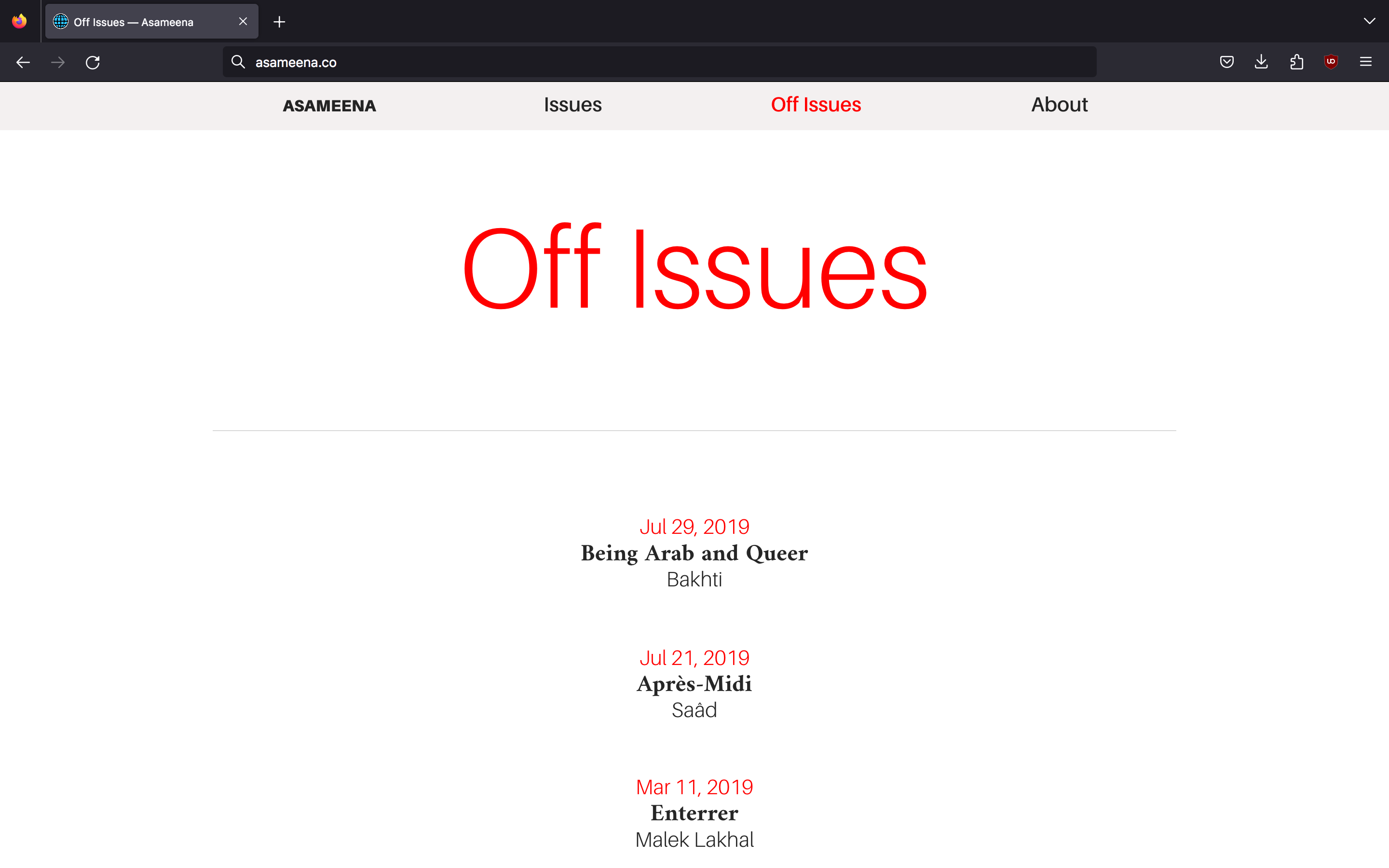 Asameena is a collective dedicated to opening up an editorial space where literary forms, including those that cannot be solved by conventional publishing institutions, can express themselves. This website serves as a reader for all the articles published by the collective.